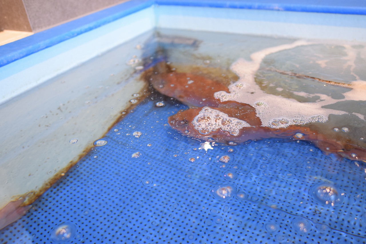 なんでも水槽に入ってしばらくすると、サカナが慣れて本能を取り戻すらしく、上手に逃げ回ってなかなか捕まえることができないとのこと。お店の人が親切に教えてくれました!