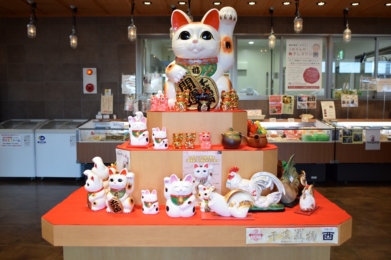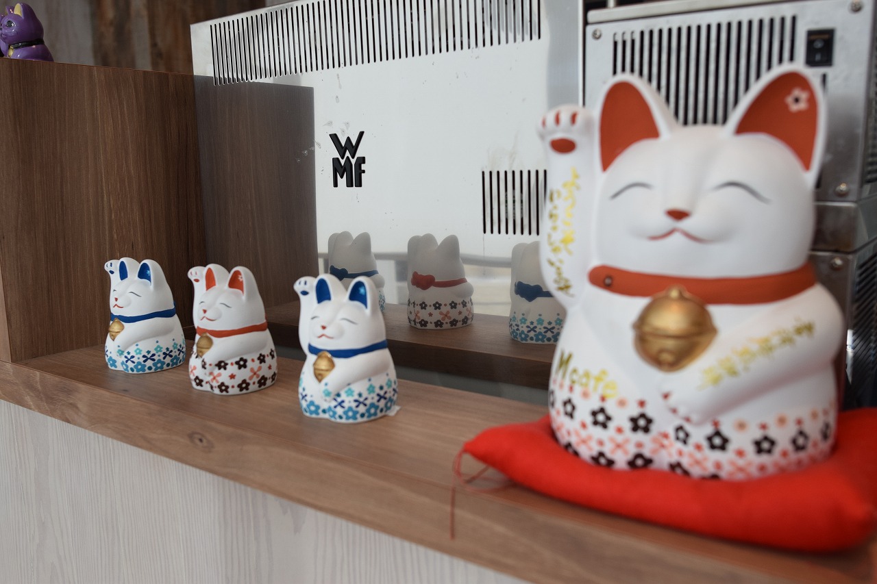 カフェ側から入店したので気づかなかったのですが、正面入口にはでっかい招き猫!
