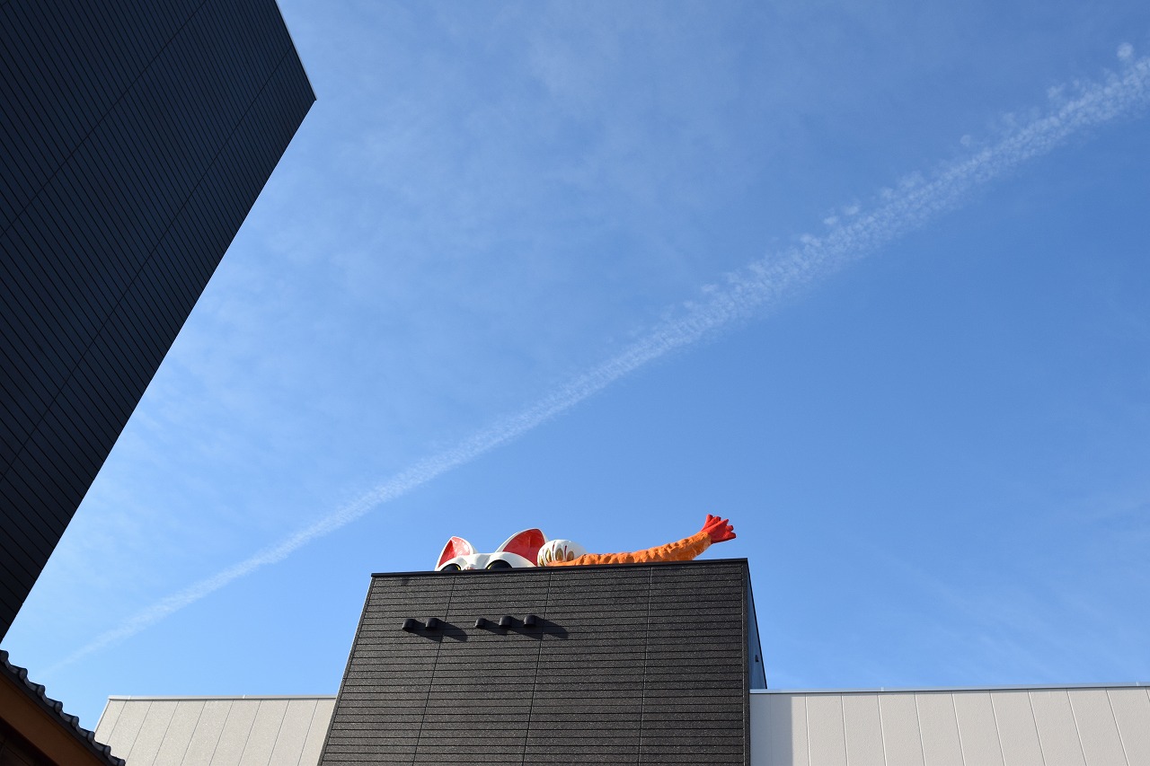 屋根にでっかいエビフライ&招き猫!