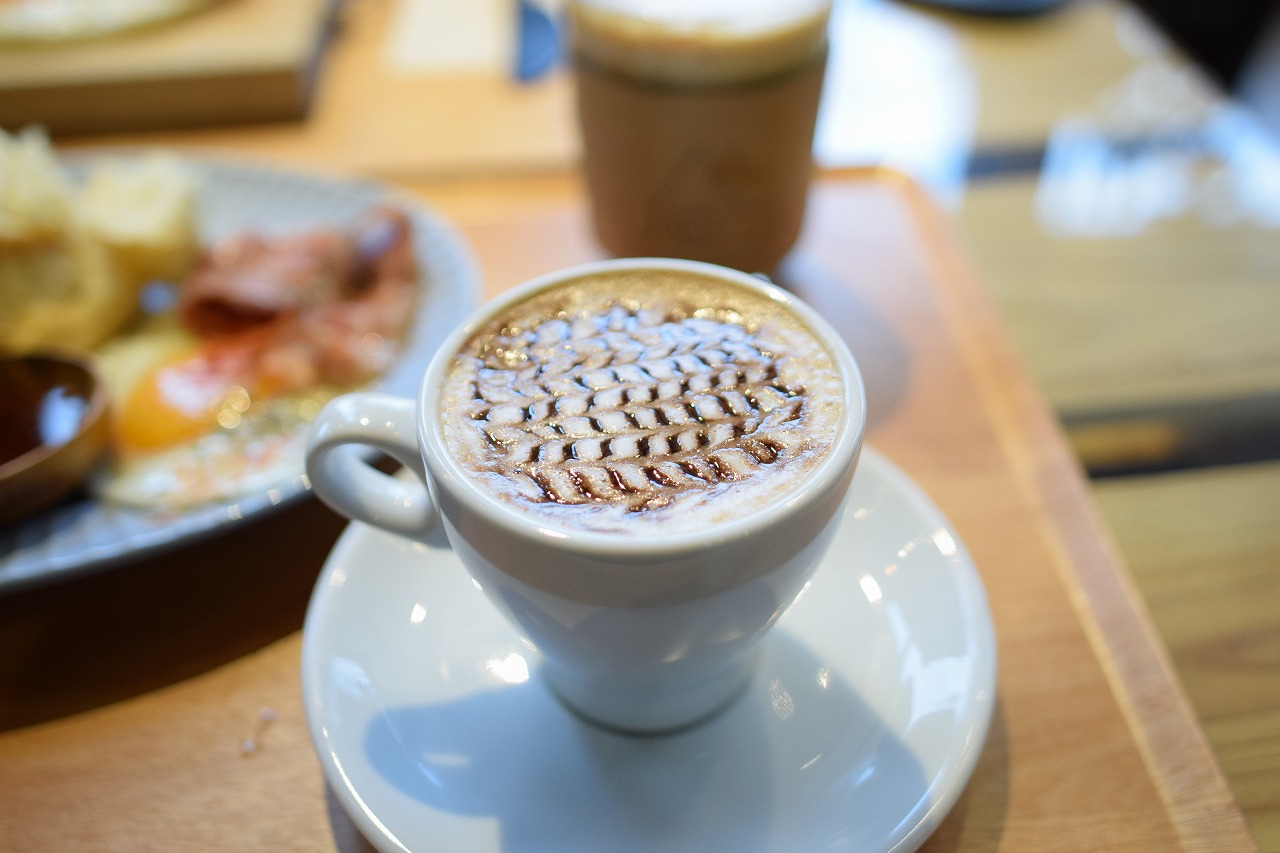こちらが奥様のカフェラテ。ちょいコーヒー濃いめ。