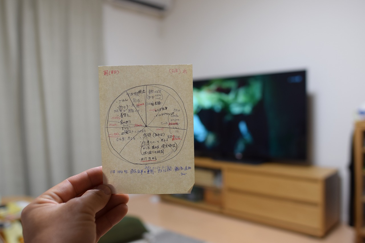 ざっくりいうと、やるべきことに優先順位をつけて書き出しそれを自分の時間に当てはめる。以上です。