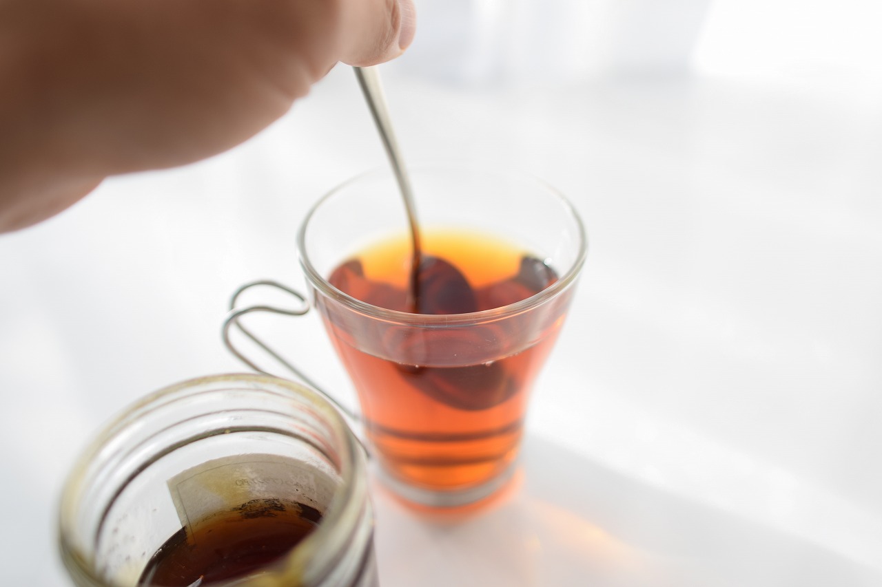 2:温めたルイボスティーにはちみつをスプーン一杯入れる