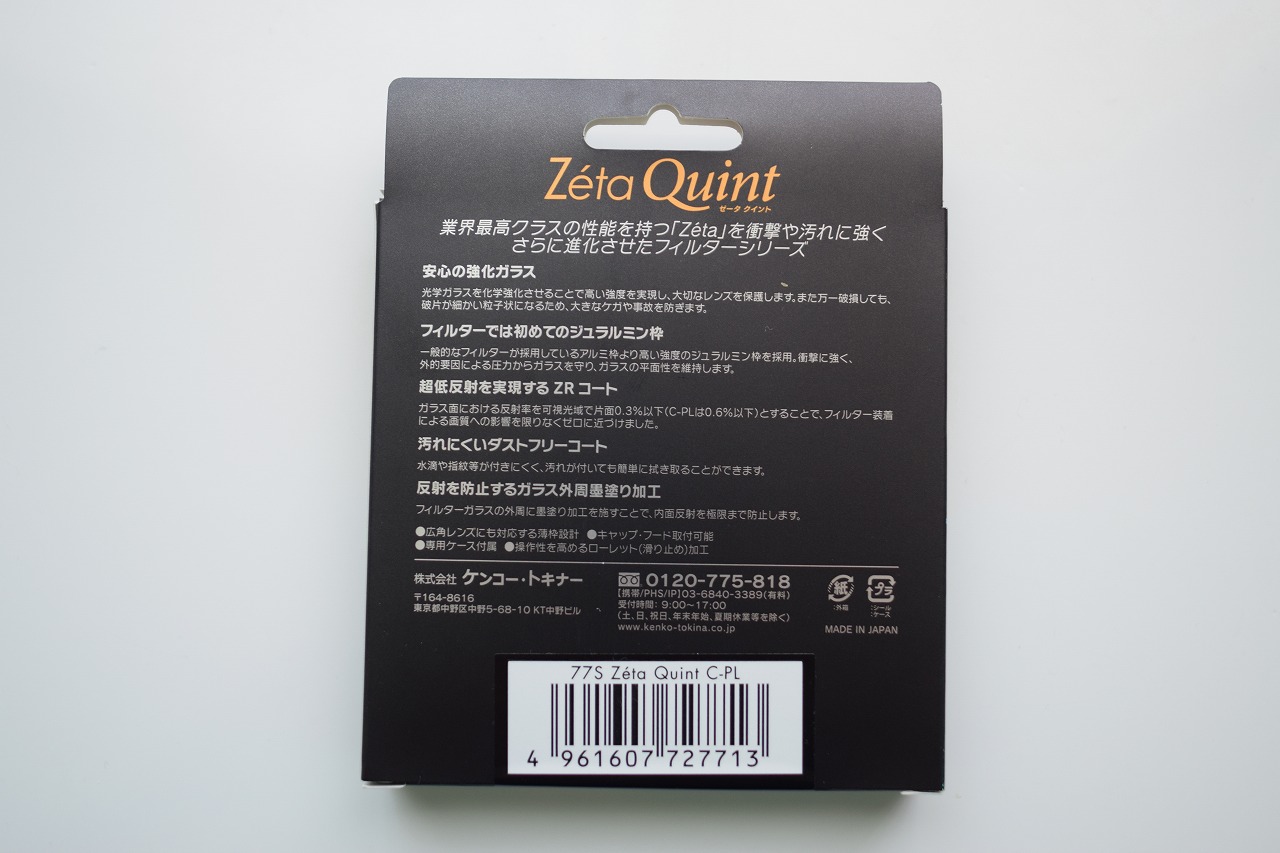 買ったのは「Kenko(ケンコー) PLフィルター Zeta Quint サーキュラーPL 77mm」。