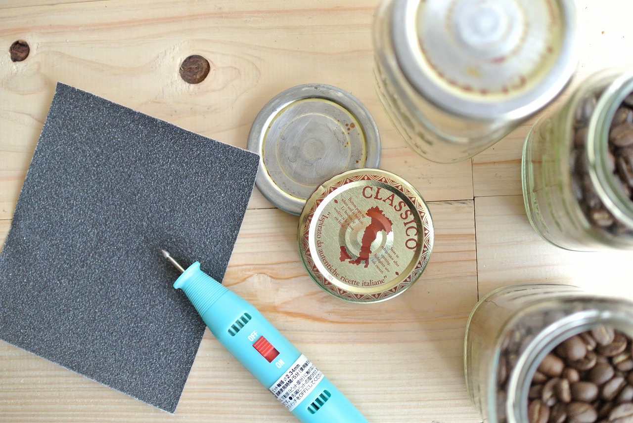 もうお分かりかと思いますが!フタにプリントされている柄を削って消してしまおうという、いたって普通、誰でもできますよ!