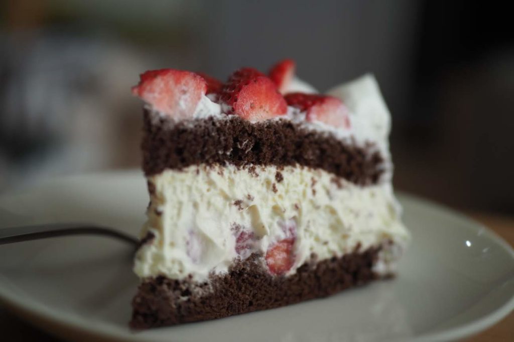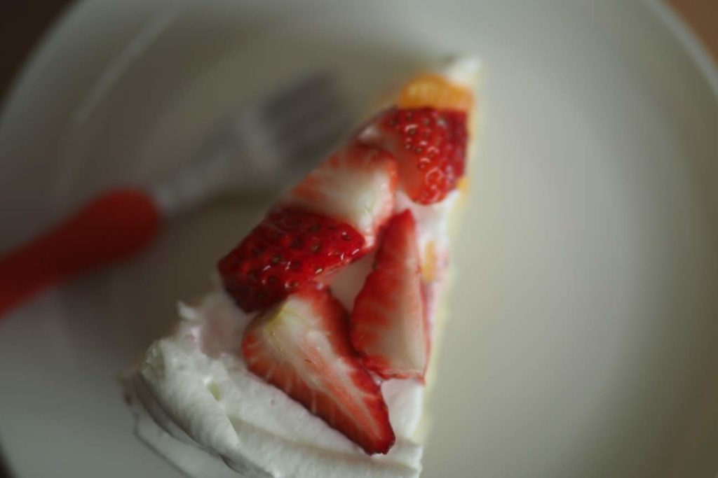 子供らしく、選んだのは果物たくさんのスポンジケーキ。美味しそうに食べてますがやはりキウイがまだ酸っぱいみたい。それにうちの娘は甘いものがそこまで好きじゃないらしく、だいたいケーキでも3分の1くらいで食べるのをやめてしまいます。子供ってそんな感じでしたっけ??
