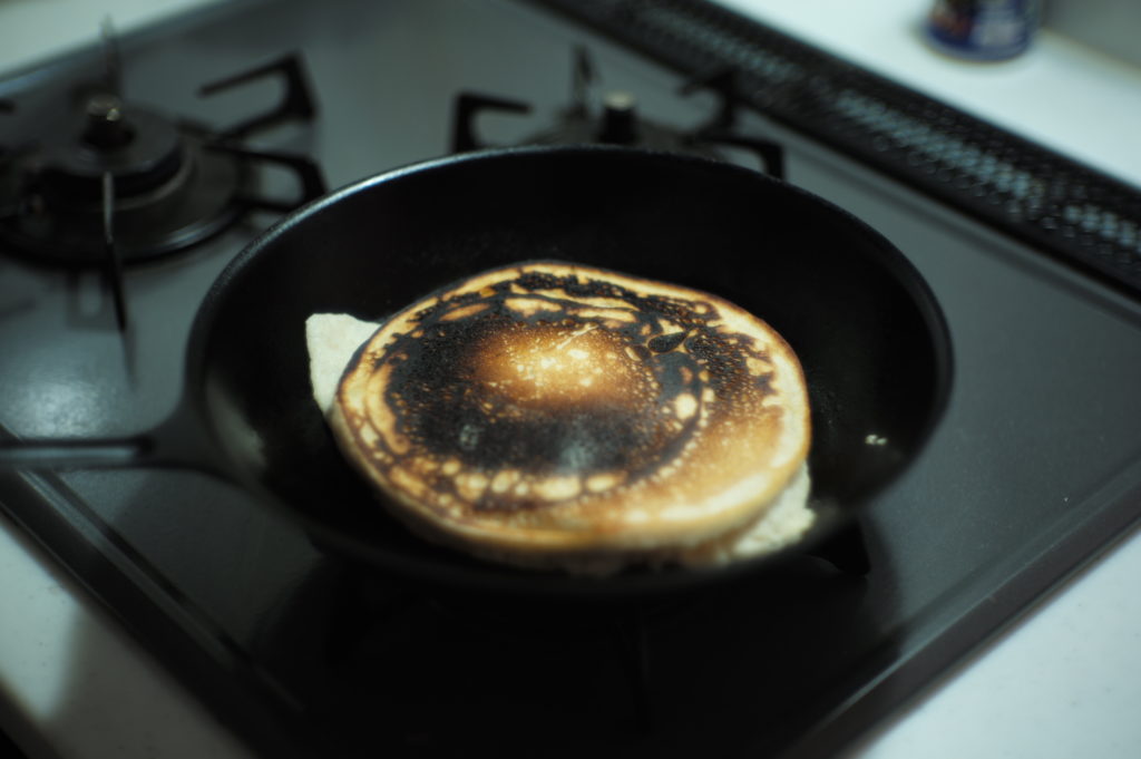 ワタシはあえてフライパンで焼きたかったので、、。唯一2回目の仕上がり(上のコーヒーと一緒に写っているやつ)が焦げめも程よくついて、奥様と娘からもギリギリ合格点をもらえました。1回目は量の割に、思ったより早く火が通ったので焦げてしまい、3回目は少しフライパンに敷く油を減らした事による焦付きが原因。理由があって失敗したとわかっているので、今後はばっちり作れそうです。何事もトライ&エラーの精神で!