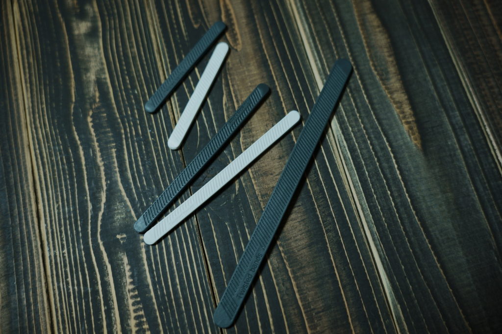 さらに細かくサイズを書きますと、ミニは「全長約82mm・横8 mm・厚み3 mm」で、真ん中サイズは「全長約125 mm・横8mm・厚み3mm」。一番大きいサイズは「全長約187mm・横12mm・厚み3.4 mm」です。