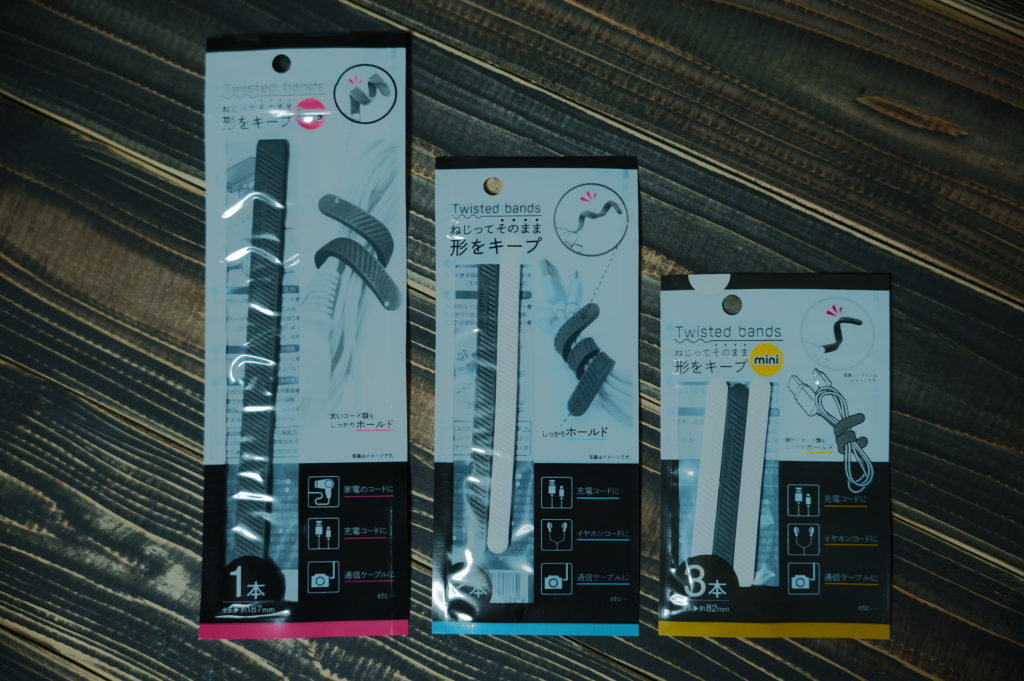 商品名は「形状記憶コードバンド」。愛称(?)は「Twisted bands~ねじってそのまま形をキープ」とでも呼ぶのでしょうか?パッケージにはそのように書いてあります。