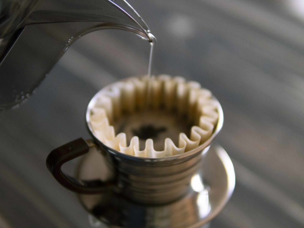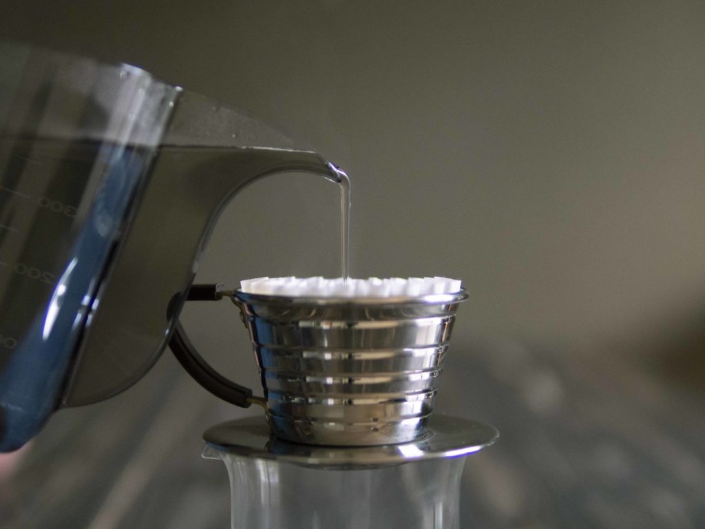 その点、ドリップケトル・エアーだと注ぎたい所(注ぐ対象?)の高さギリギリまで口を近づけることができるので、水滴が飛び散ったりすることがほとんどありません。