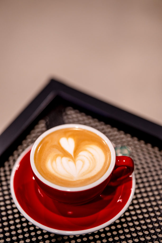それから1杯サービスのコーヒーはカフェラテを。