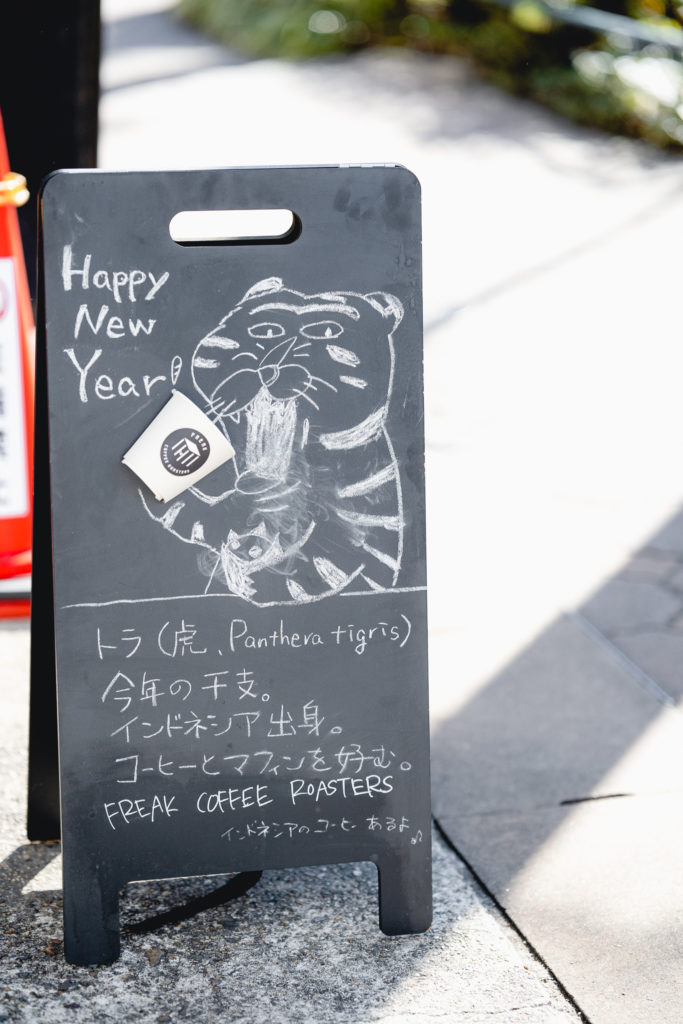 建物の入り口に看板が出ていたんですけど、今年は寅年ということでインドネシアのコーヒーをチョイス。