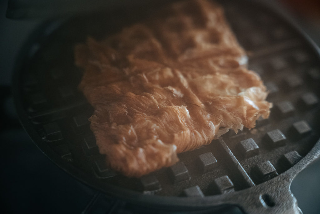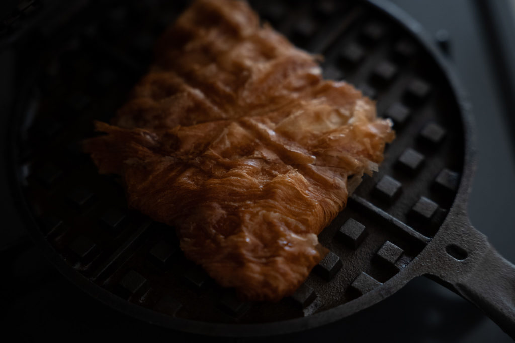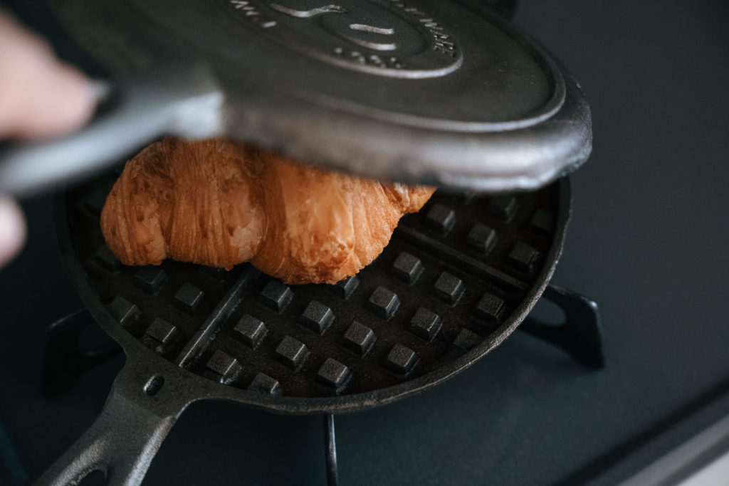 ちなみにクロワッサンのバターのおかげか、ワッフルメーカーに焦げ付くこともなく快適に調理できました〜。