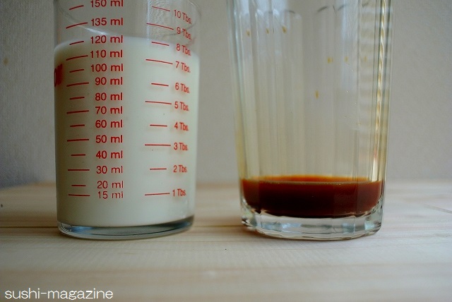 7:そこに冷たいミルクを120cc入れて少しかきまぜ、