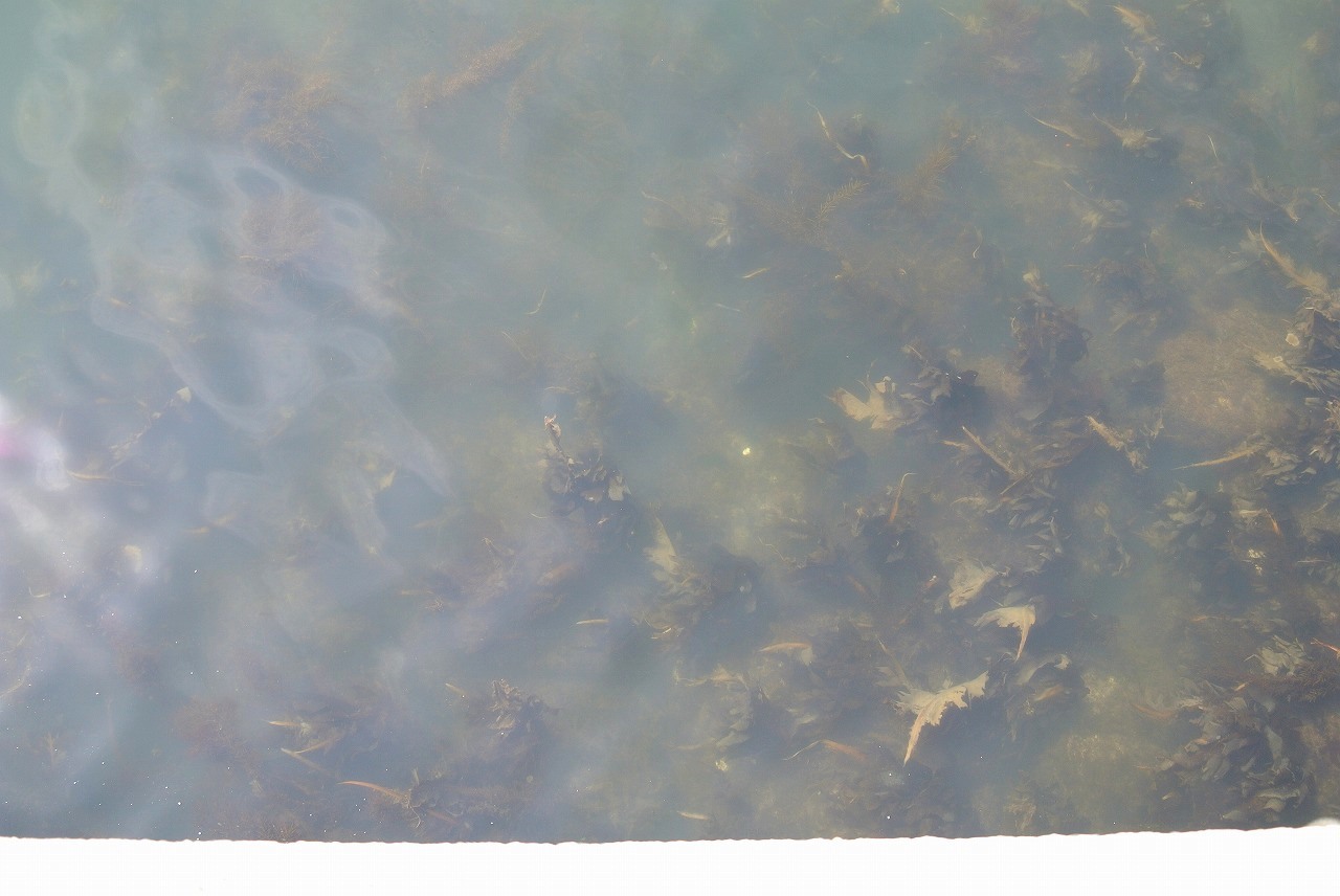 海底が丸見え、海藻も足元までびっしりで、これは釣れる雰囲気ではないなー。