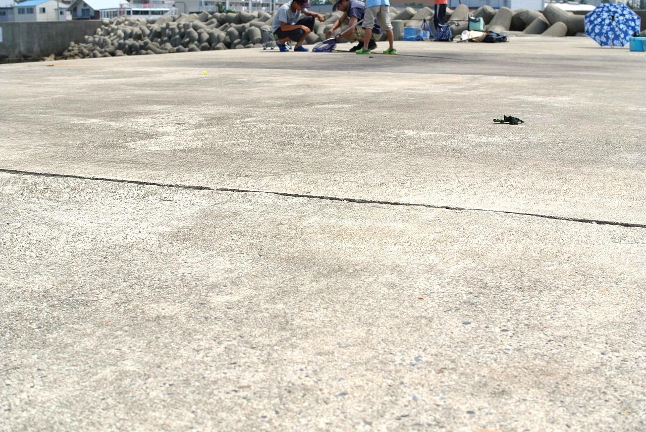 先客のお父さん。カサゴみたいなのがテトラポッドの間で釣れてるみたいです。