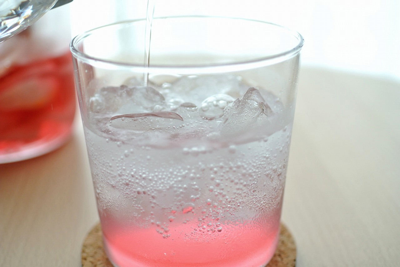 やはり最初は炭酸割りでしょう、ということでピンクレモネードを作ってみました!