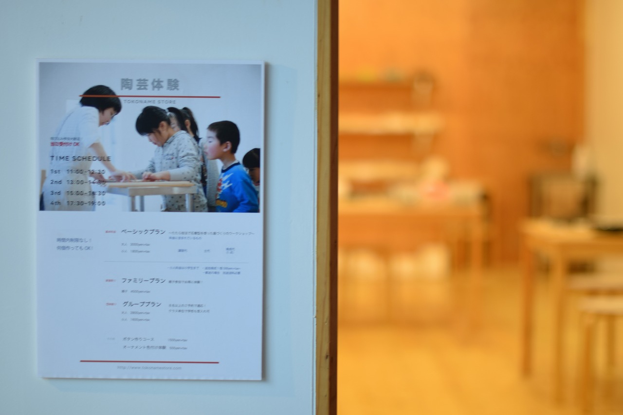 倉庫の中は3つのスポットに分かれていて、まずは陶芸体験のとこ。